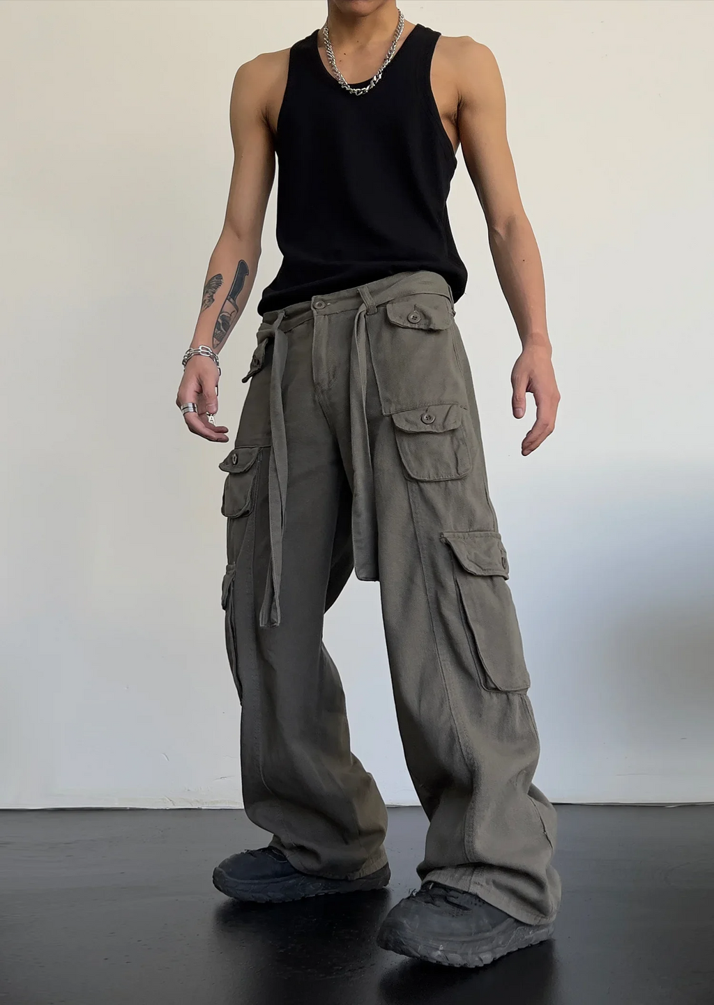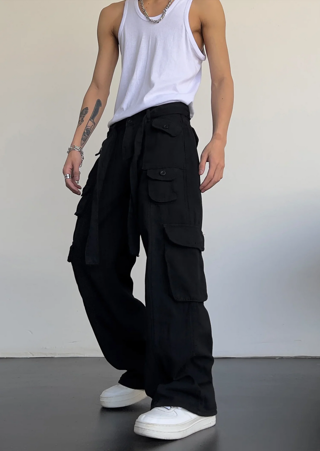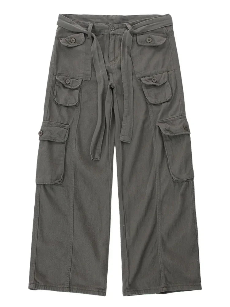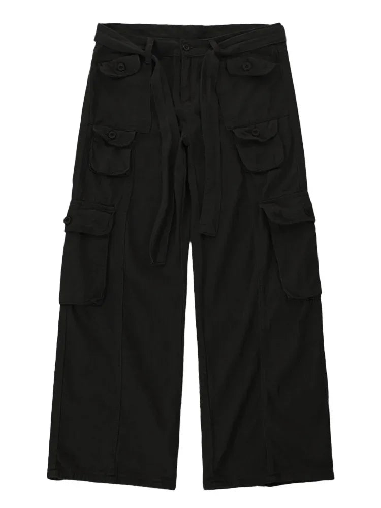 Diese Hose verfügt außerdem über Gürtelschlaufen , sodass Sie die Taille für eine individuelle Passform nach Ihren Wünschen anpassen können. Der flache Stoff-Kordelzug in der Taille verleiht einen zusätzlichen Hauch von Stil und bietet gleichzeitig eine praktische Lösung für eine bequeme Passform. Mit ihrem praktischen und stilvollen Design ist diese Cargohose die perfekte Wahl für Streetwear- Modeliebhaber .