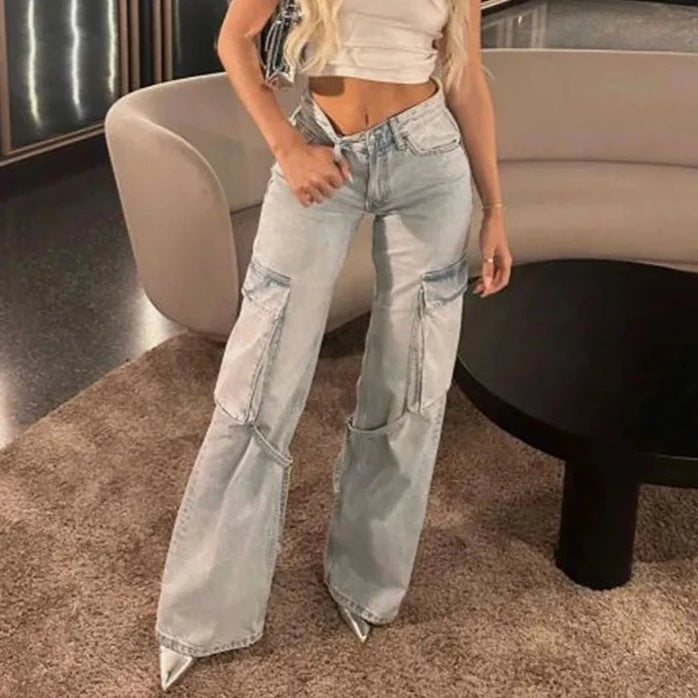Entdecken Sie unsere Damen Cargo Jeans 2024 - Einzigartiges Design mit Schnürung, weiten Beinen und hochwertigem Baumwoll-Denim für den perfekten Mix aus Stil und Komfort.