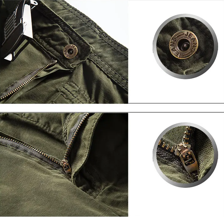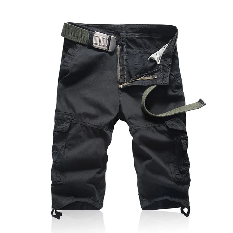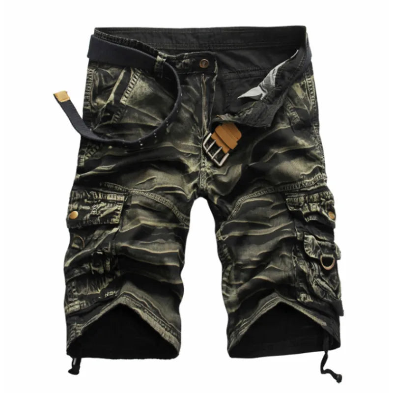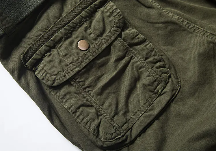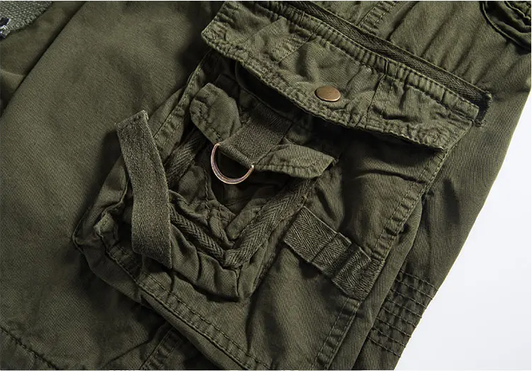 Klassische Cargo-Shorts: Die Hose hat einen bequemen mittelhohen Bund, einen echten Metallreißverschluss mit Klappe und eine Klappe mit mehreren Taschen für maximalen Stauraum. Das Kordelzug-Design der Hose ermöglicht das Schließen der Hose.