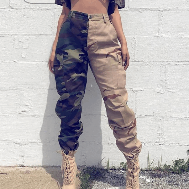Streetwear- Stil ist eine faszinierende Modekunst, wenn er richtig umgesetzt wird. Sie können stolz auf sich sein, wenn Sie sich für diese Camouflage-Cargohose für Damen entscheiden. Vor allem erhalten Sie ein Modell, das Beige mit der militärischen Tarnfarbe mischt. Auch dieses Modell hat einen taillierten Schnitt mit Straffung an den Knöcheln .