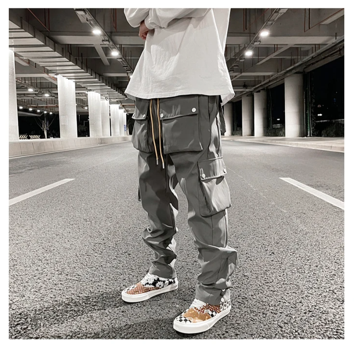 Cargohose mit mehreren Taschen, speziell für alle Männer, die einen lässigen Look wünschen und gleichzeitig trendig bleiben möchten. Dank seiner anthrazitgrauen Farbe lässt es sich sehr gut mit einem bedruckten T-Shirt, einem Sweatshirt oder sogar bunten Schuhen kombinieren. Dieser Trainingsanzug ist perfekt für alle Ihre sportlichen Aktivitäten. Damit können Sie Aufwand mit Mode verbinden.