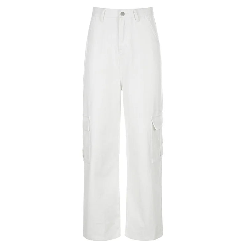 Pantalon cargo pour les femmes en sergé blanc : le confort streetwear avec style