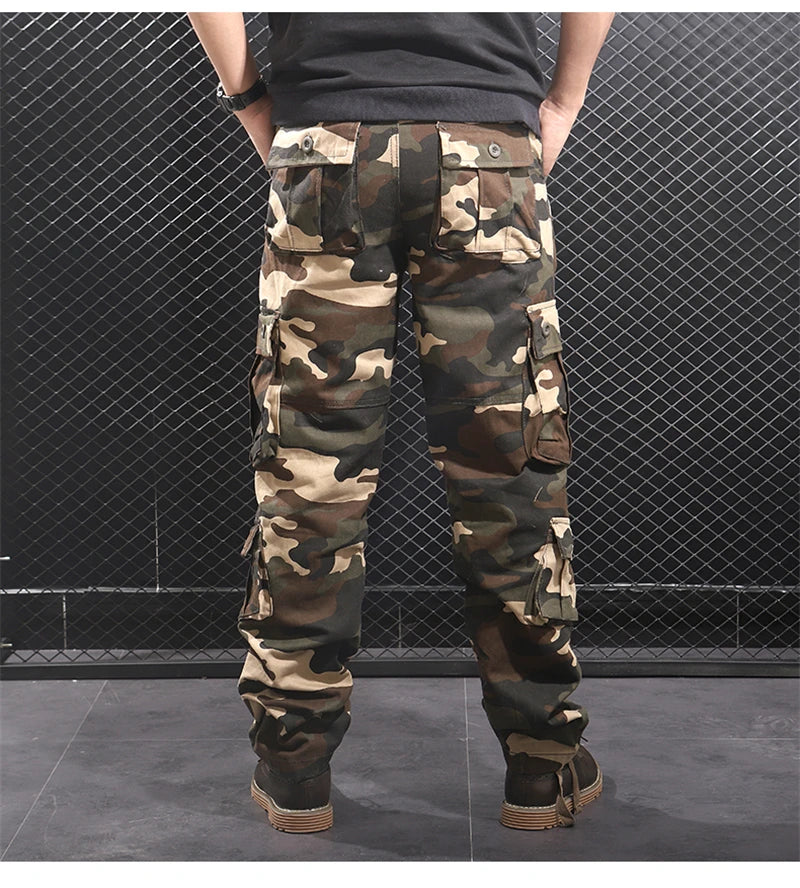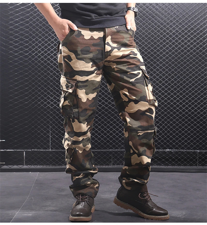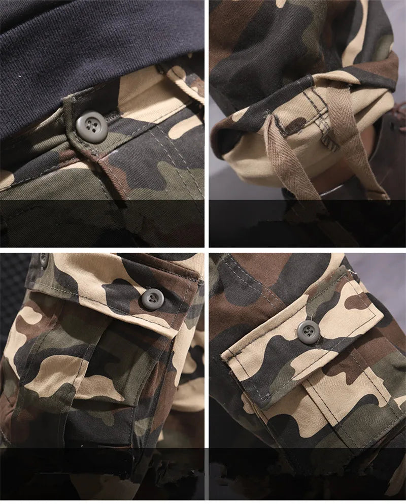 Die Salopette im Streetwear-Stil ist ein Statement für den modernen Mann, der sich nicht nur durch seinen individuellen Stil auszeichnet, sondern auch einen Hauch von militärischer Eleganz in seinen Alltag integrieren möchte. Die Cargo-Hose präsentiert sich in einem ansprechenden Camouflage-Muster, das nicht nur Tarnung bietet, sondern auch die Blicke auf sich zieht.
