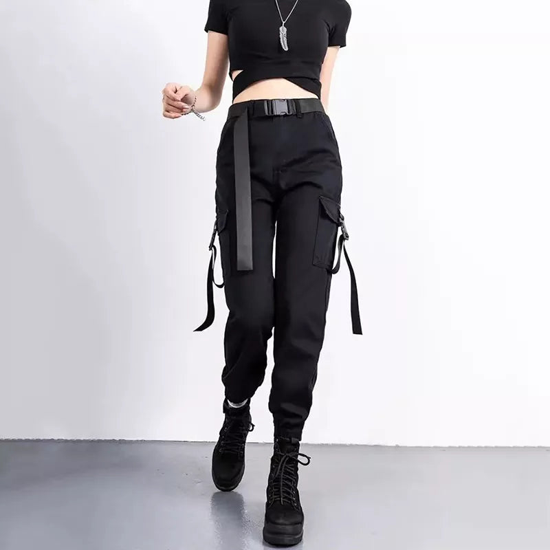 Die beiden seitlichen Taschen fügen einen Hauch von Charme hinzu und bieten praktischen Stauraum. Die sexy und verführerische Note kommt durch den Gürtel. Ob am Strand spazieren oder bei den schicksten Veranstaltungen der Stadt – diese schwarze Cargohose ist die perfekte Wahl.