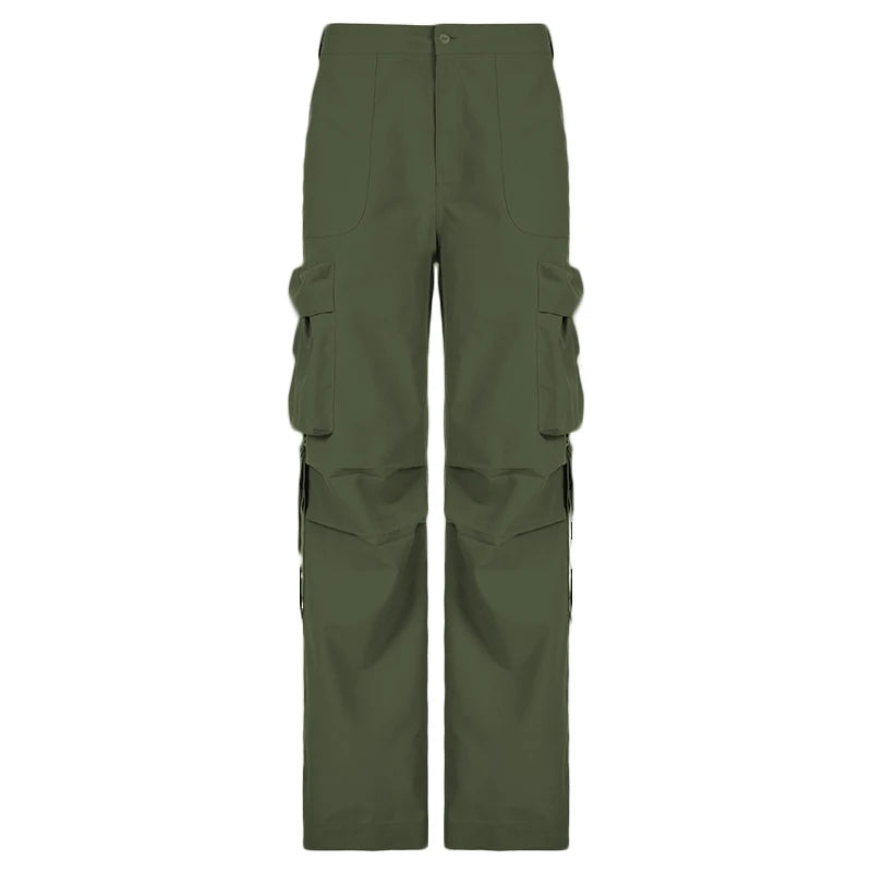 Entdecken Sie unsere Damen Cargo Pants in trendigem Armee-Grün. Einzigartiges Design im Vintage-Glamour der 90er Jahre, kombiniert mit modernem Streetwear-Chic.