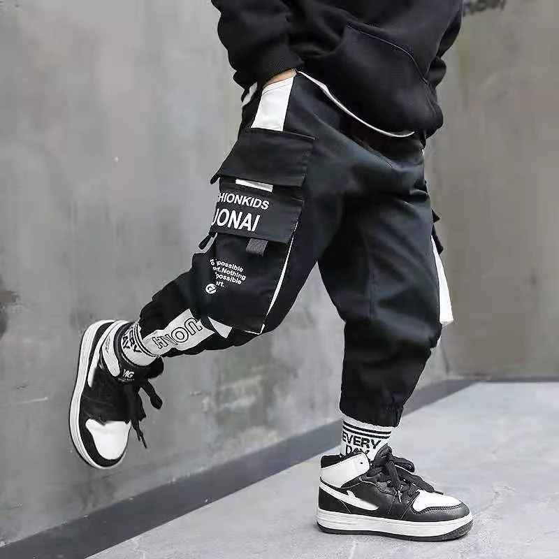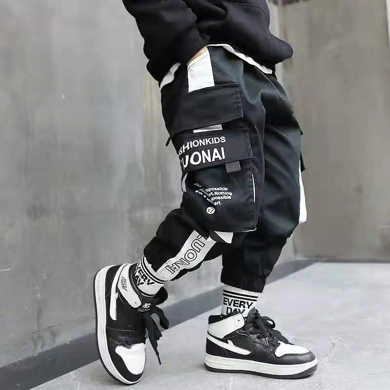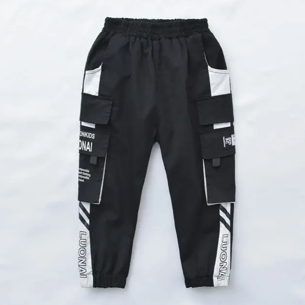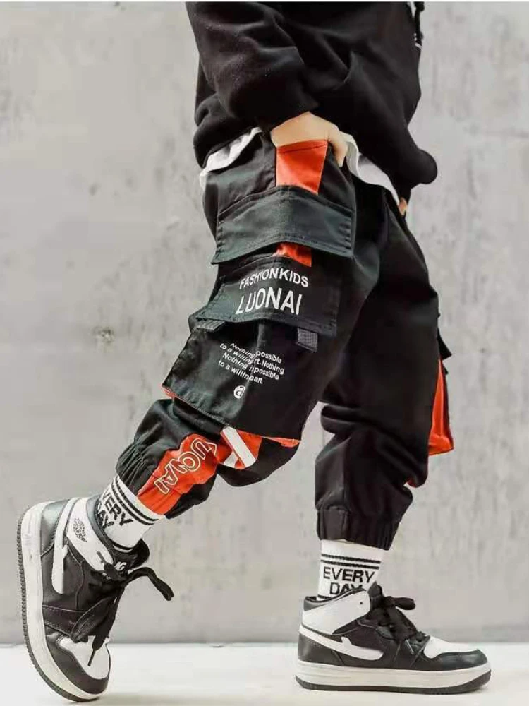 Tatsächlich haben diese bedruckten Hosen auch einen weißen Streifen , der ihnen einen sehr urbanen Stil verleiht. Darüber hinaus benötigt Ihr Kind sicherlich die beiden zusätzlichen großen Taschen direkt über den Knien, um allerlei Gegenstände transportieren zu können. Für einen bestimmten Stil kombinieren Sie diese Hose mit schwarz-weißen oder schlichten schwarzen Sneakers sowie weißen Socken. Ihr kleiner Junge wird in dieser Cargohose mit Sicherheit großartig aussehen .