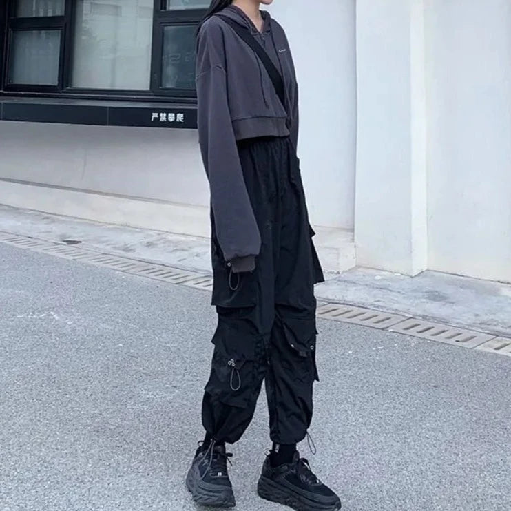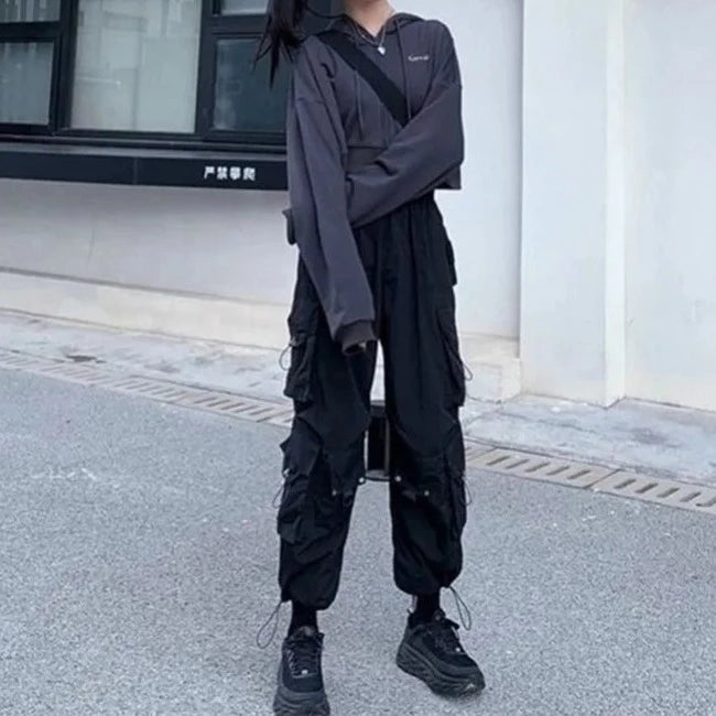 Entdecken Sie den perfekten gothischen Touch mit unserem schwarzen Damen-Cargohose. Dieser weite Cargo-Stil mit hoher Taille und einer großen Tasche verbindet lässige Eleganz und bequemen Style. Hergestellt aus hochwertigem Polyester und Acryl mit feinem Gewebe, bietet er nicht nur ein angenehmes Tragegefühl, sondern auch einen trendigen Look.